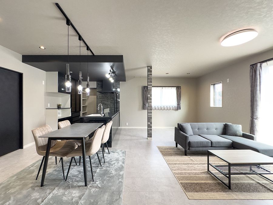 黒をベースにした重厚感のある外観と、モノトーンにまとめたモダンなインテリア。