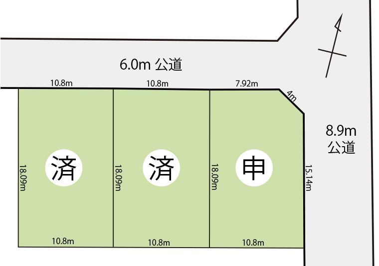 | 道路 | 北側公道6.0m、東側公道8.9m(歩道含む) |
